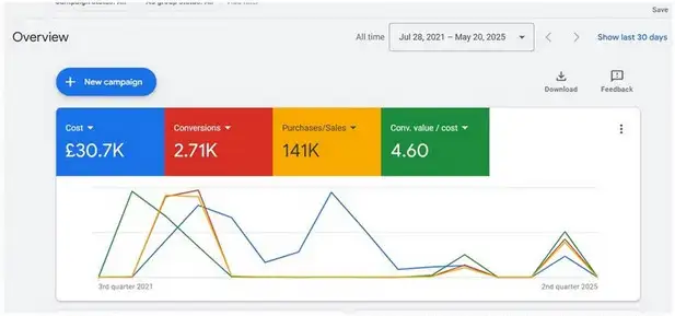 ● High cost per sale: Google Ads campaigns were not optimized for conversions, resulting in an inefficient cost structure.