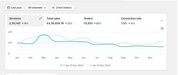 ● £4.3M Total Sales in 2024: Sales increased by 22% YoY, reaching over 13,353 orders, a 92% jump compared to the previous year.